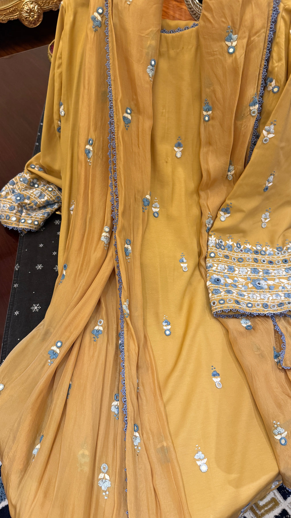 Bright Butter Yellow 🧈 Shade with Serene shaded Blue Pakka tanka is perfect for your mid season and winter gatherings✨💙